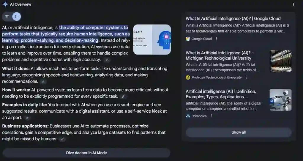 These overviews typically appear at the top or in a dedicated pane on the results page. Google created them to address the growing demand for instant answers and more comprehensive context without overwhelming users with numerous separate results.